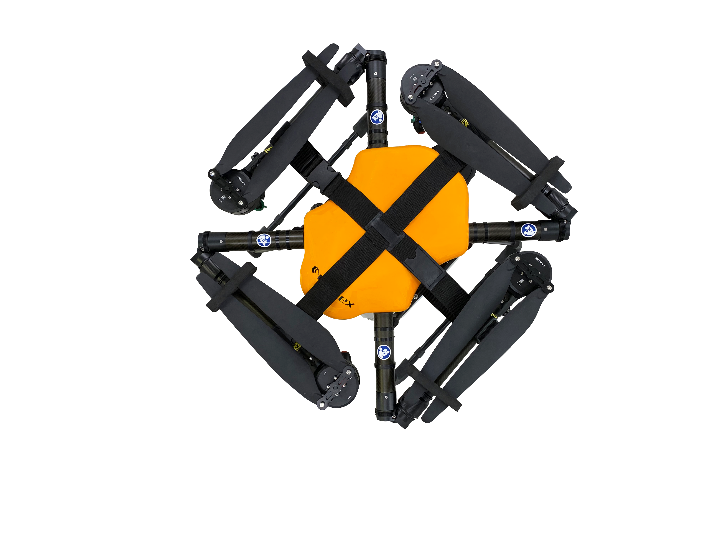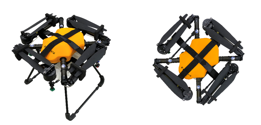 ドローンの動力であるブラシレスモーターとESCの変更に伴い、プロペラも折りたたみ式に変更しています。作業毎にプロペラを脱着させる必要がなく、ワンタッチベルトで簡単に持ち運びが可能です。