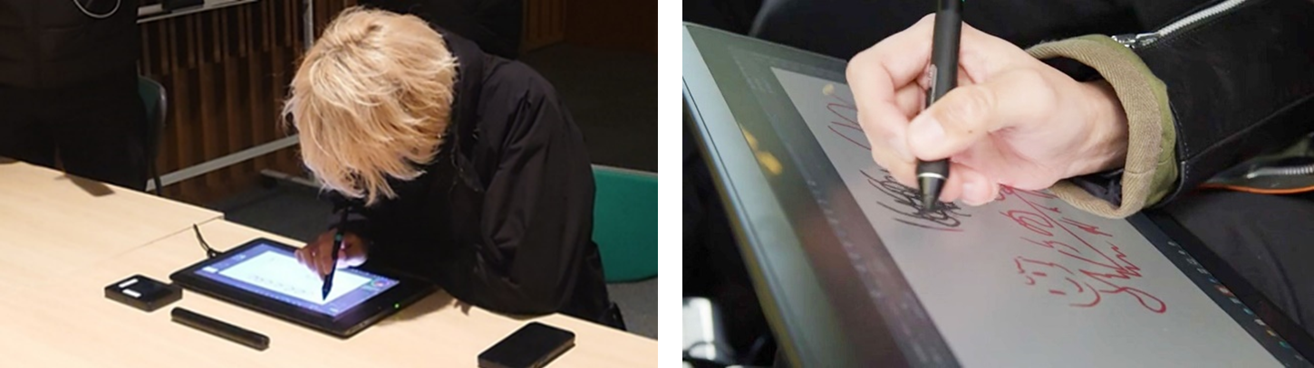今回、アニメCG業界での利用を想定し、カラーに所属するクリエーターが、ワコムが提供する液晶ペンタブレットを用いて、高解像度・高フレームレートで液晶ペンタブレットにおけるデジタルペンの筆圧および傾きなどの信号を検知し、オフィス環境と同等の操作性で描画も円滑に行えることを確認しました。