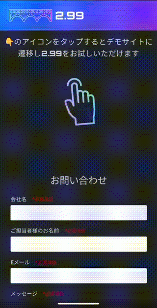 キャンペーンごとに弊社から発行する固有のURLにアクセスすると、「2.99」のアカウントがあるかどうかをチェックします。