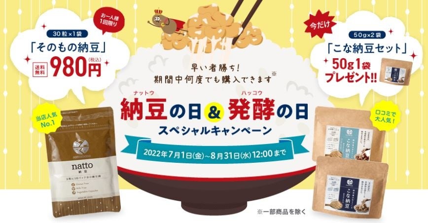 7月10日(ナットウ)の日に合わせ、「ナットウの日スペシャルキャンペーン」を開催。今年は8月5日(ハッコウ)の日とあわせて、初のロングラン開催となります。
