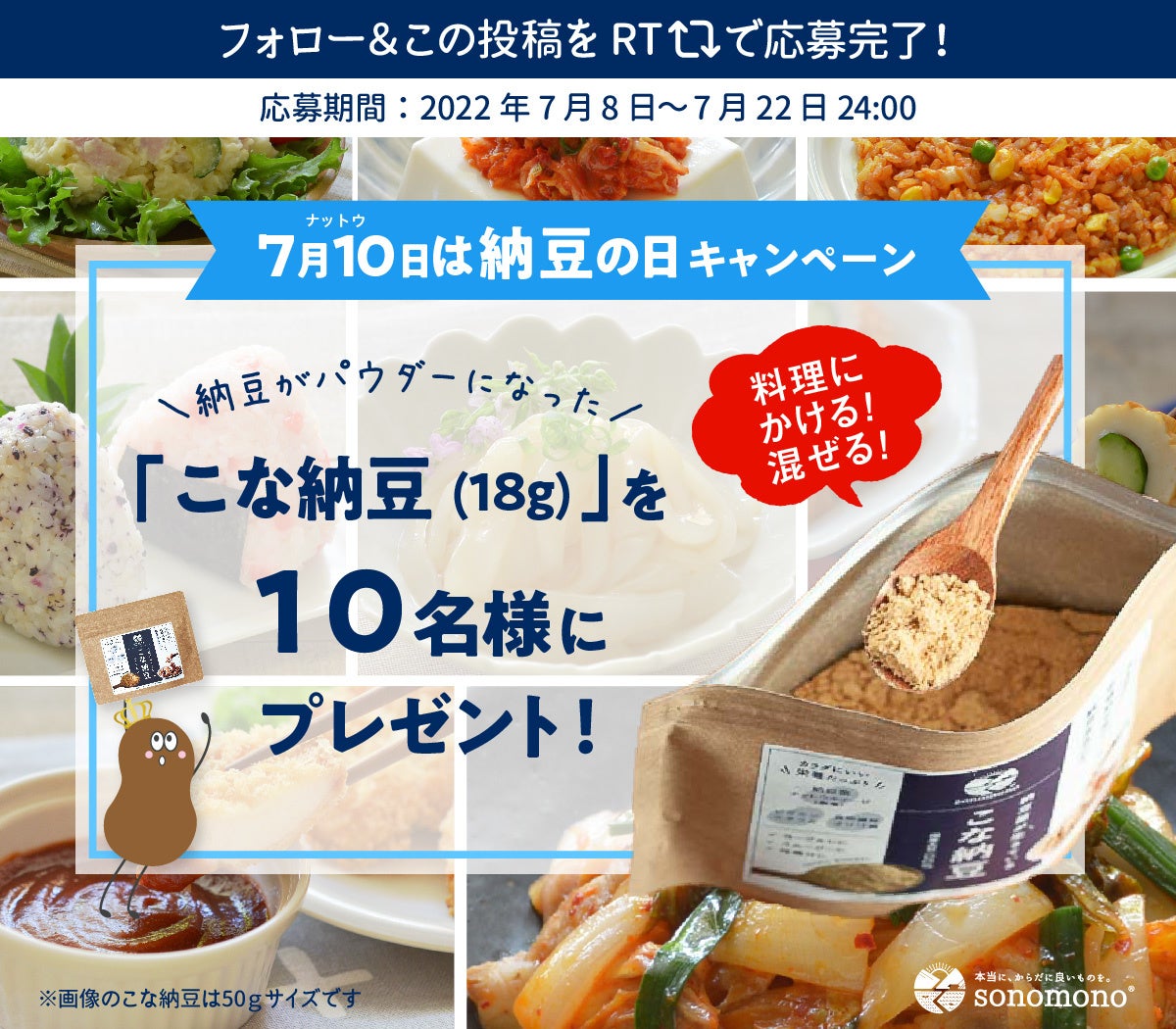 sonomono公式Twitter(@sonomono_JP)をフォロー&RTで「こな納豆」を10名様にプレゼント!