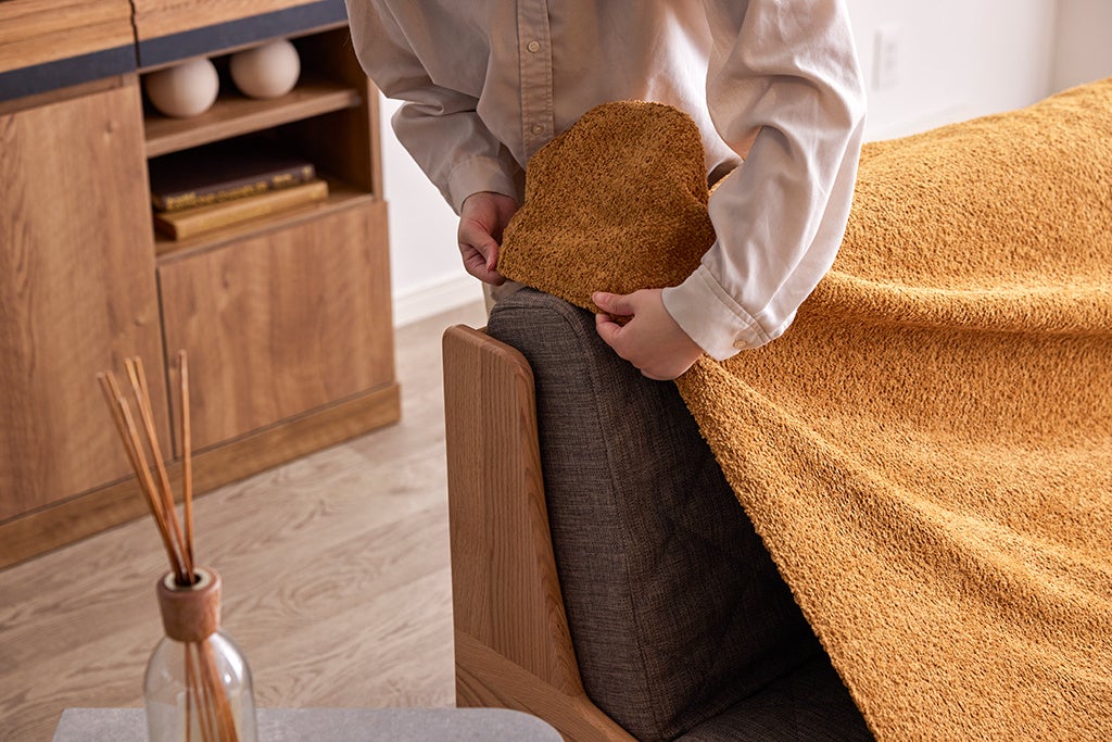 サッと被せることができ、洗えるらくらくカバーから高級感のあるシェニール織のラインナップを追加