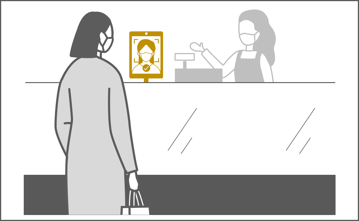 (1)概要:梅田店に引き続き、マスク対応顔認証決済による商品購入の実証実験を実施します。NECの顔認証技術を採用し、マスクをしたまま、非接触での決済を体験いただくことができます。