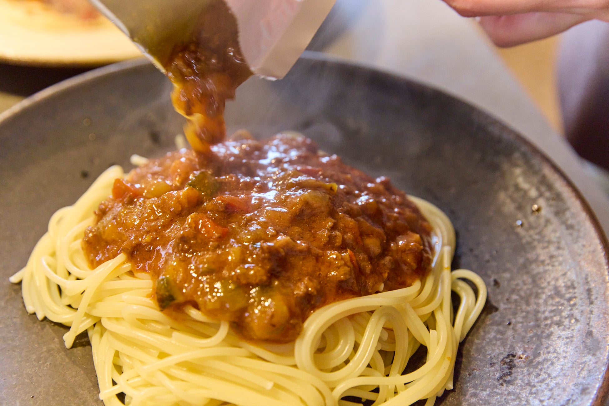奇をてらわない王道のお肉を感じるミートソースです。