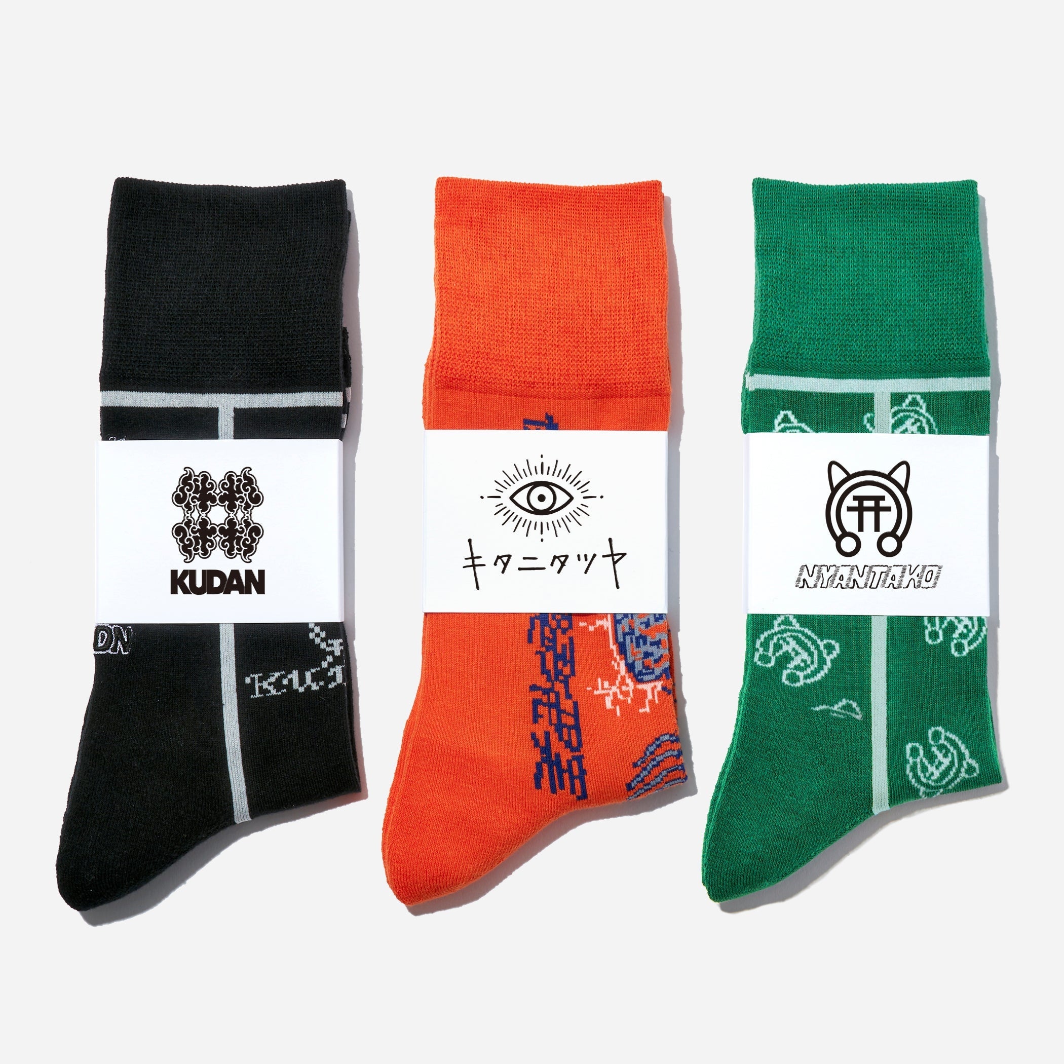 「ソックスからその日のスタイリングを考える」をコンセプトに、編み立てから仕上げまでを国内で行っている「CHICSTOCKS(シックストックス)」は、「幽幻怪社-KUDAN-(ゆうげんがいしゃクダン)」をプロデューサーに迎え、KUDANと親交のあるアーティスト「キタ二タツヤ」とYouTuber「にゃんたこ」にKUDANを加えた3モデルのソックスの受注販売を開始する。