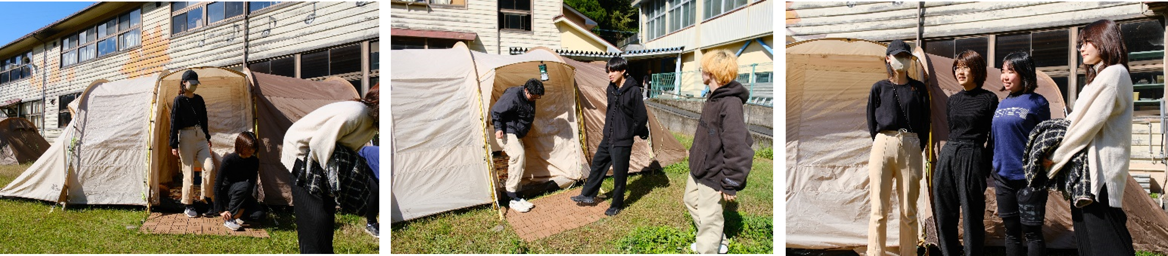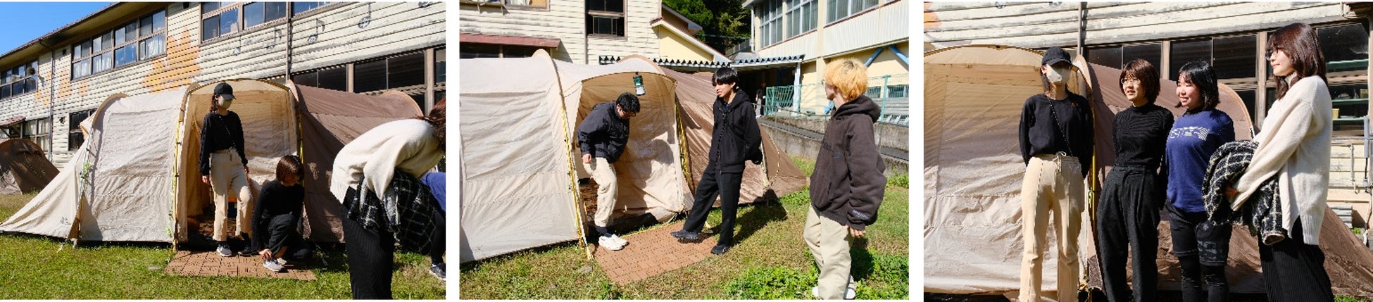 その後、芦津渓谷上流域に位置する「キャロウェイの森」にて智頭町大字芦津財産区のサポートを受けながら植樹体験をした後、一般社団法人more treesの岸 卓弥氏による生物多様性に関する講義を受講。岸氏は次のように渓畔林における森づくりの重要性について語りました。「多様性のある森づくりによってできた肥沃な土壌は鉄分を川にもたらし、それらが海に運ばれることで海も豊かになります。つまり豊かな海を作るには山を肥えさせなければならないのです」。一日目のプログラムを終えた武蔵野美術大学の学生はその後、旧山形小学校にてキャンプを楽しみ、”外遊び”を存分に満喫しました。