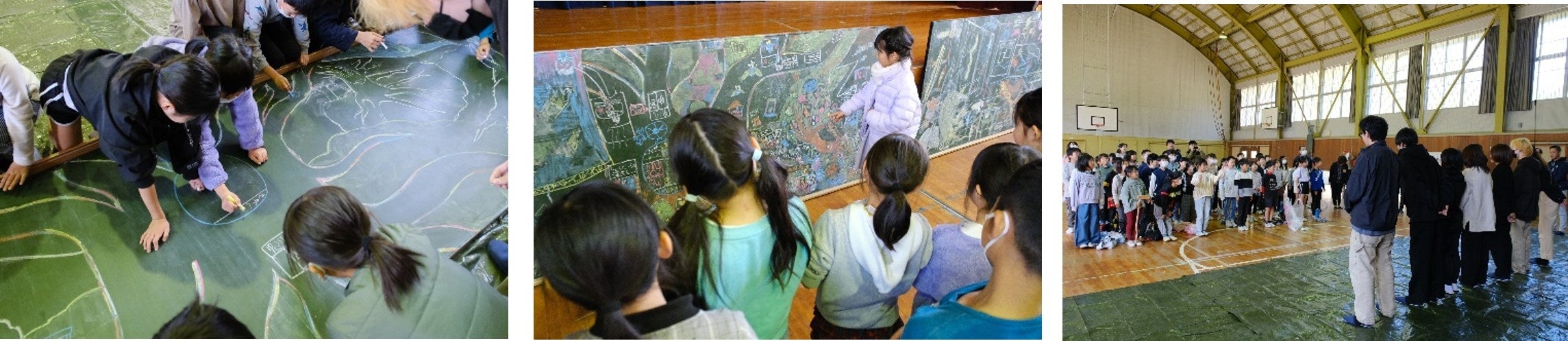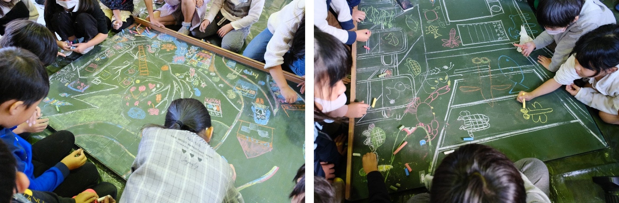 参加した児童からは「黒板に大きく絵を描くのは初めてで楽しかった」といった感想や、「学校の裏山にいる生物を描きたいと思って持って来たヤモリやカエルを、観察しながら描きました」といった声が聞かれました。