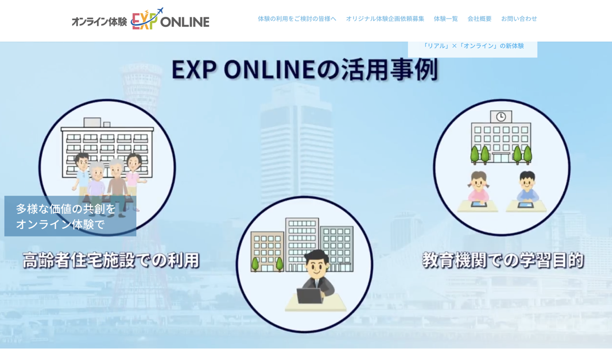 (EXPオンラインの"EXP"とは英語の「Experience(体験)」と「Express(表現する)」を掛け合わせた言葉で、新しい価値を創出し続けて行く事をイメージしております。)