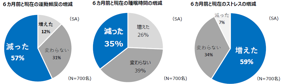 - 半数以上の受験生が、半年前と比較して、「運動頻度の減少」「ストレスの増加」(免疫低下の要因)を経験。