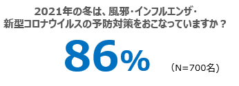 - 風邪・インフルエンザ・新型コロナウイルスの予防対策をおこなっている受験生は86%