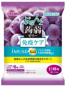 「オリヒロ ぷるんと蒟蒻ゼリーパウチ プラズマ乳酸菌(巨峰味)」