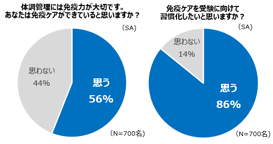 - 「免疫ケアができている」と思わない受験生は44%という結果に。86%が「免疫ケアを受験に向けて習慣化したい」と回答