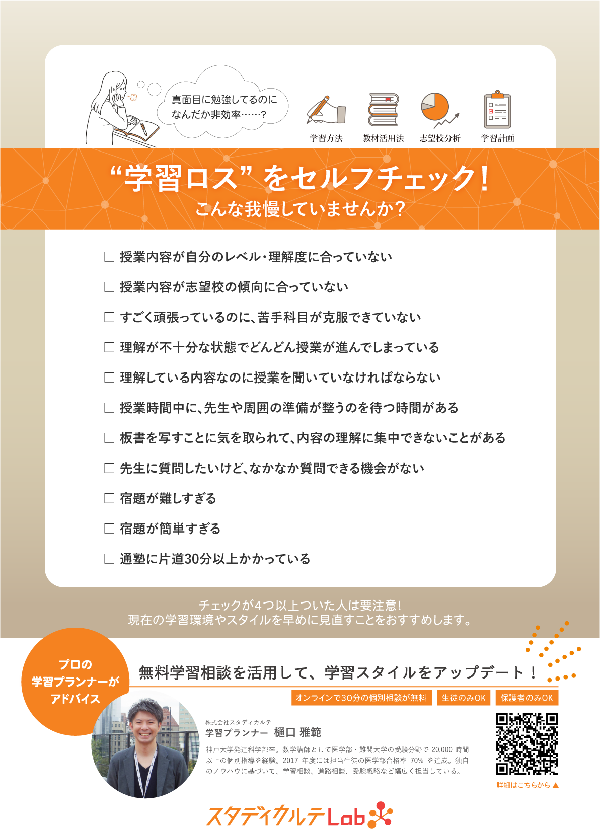 ■ “学習ロス” をセルフチェック!早めに学習スタイルの改善を