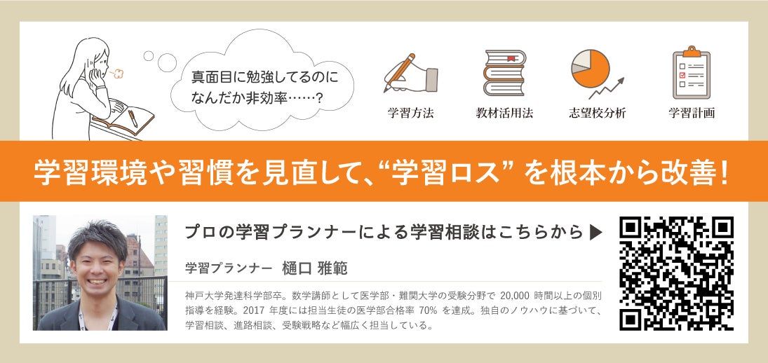 宿題の目的のひとつは「理解したことの定着・確認」ですが、何からの原因で学習効率が悪いまま取り組んでしまっている高校生が後を絶ちません。また、漠然と不安を抱えているものの、改善する機会がなかなかなく、努力が空回っているというケースも。どんなに真面目に机に向かっていても、自学自習の方法に “学習ロス” が多く残ったまま学習を続けている場合は、学力はなかなか身につきません。