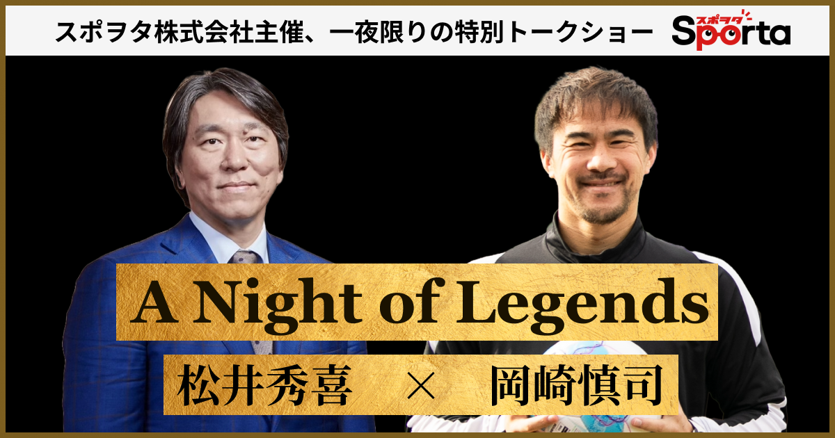 Sporta Japan Corporationは、日本スポーツ界を代表する2人のレジェンド、松井秀喜(元ニューヨーク・ヤンキース)と岡崎慎司(元レスター・シティFC)による初共演トークショー「A Night of Legends」を、2026年4月13日(月)にニューヨーク・マンハッタンにて開催します。同一ステージで2人が語り合う、世界初かつ一夜限りの特別イベントです。