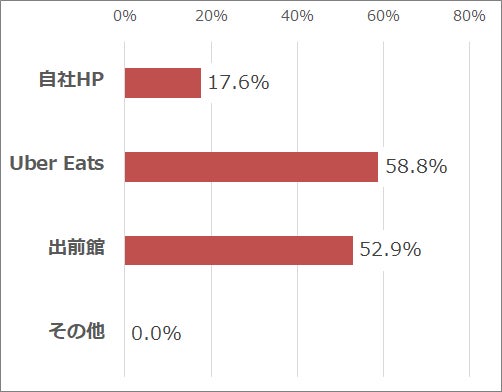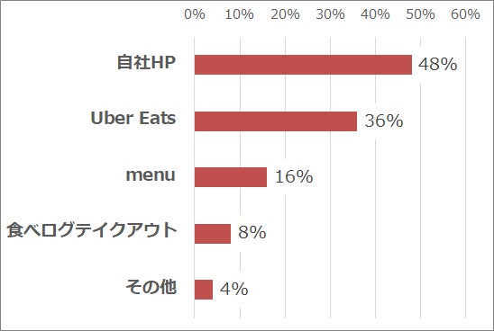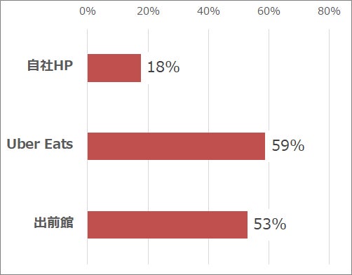 同様にデリバリーについて尋ねたところ(Q7,Q8)、ネット受注もしくはネット決済を利用しているのは26%で、テイクアウトの2倍だった。しかし、利用しているサイトは「Uber Eats」や「出前館」などの仕組みが半数以上を占め、「自社HP」という回答は最も少なかった。