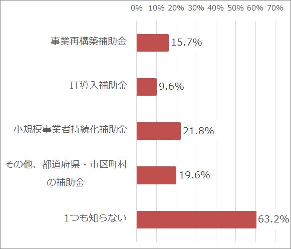 - 飲食店の補助金利用「1つも知らない」が63.2%と多数、補助金活用には認知、理解の壁