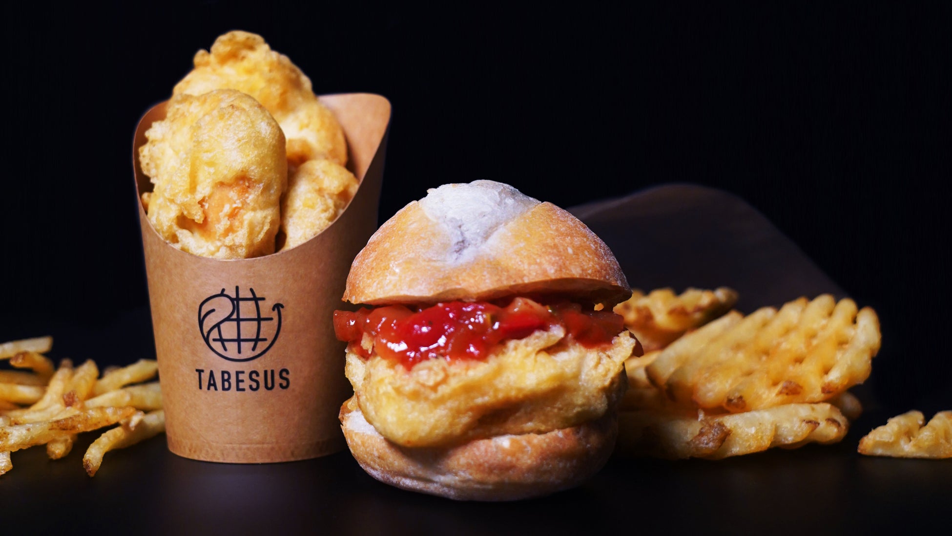 そこで、「TABESUS(たべサス)」では、卵を産み終えた「親鳥」に注目。鶏の健康に配慮して大切に育てている千葉県いすみ市の鶏卵業者から仕入れた親鳥を原料に使用し、豆腐の生産工程で生まれる「おから」などを混ぜて、外はカリッと中はふわふわで柔らかくジューシーに仕上げたチキンナゲットと、野菜のソースをたっぷりのせて米粉のバンズで親鳥のフライドチキンを挟んだミニチキンバーガーをつくりました。