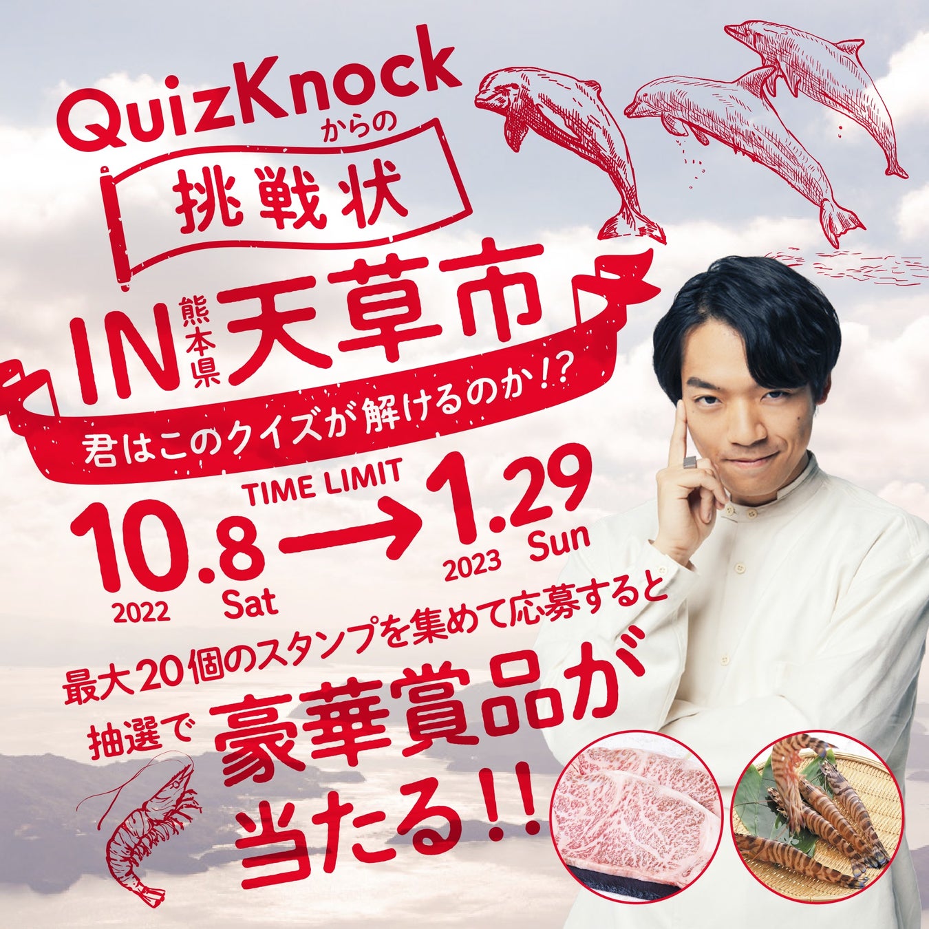 現在、テレビ番組等で人気を誇る伊沢拓司さん率いる東大発知識集団「QuizKnock」が天草市にまつわるクイズを監修。