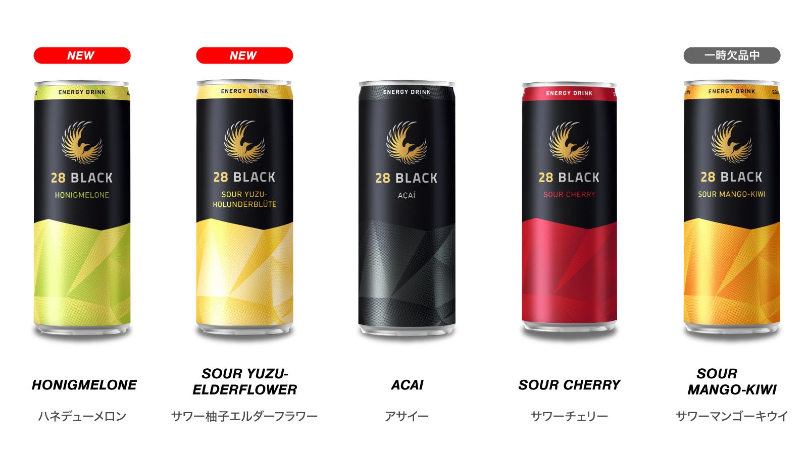 ルクセンブルク大公国発 ドイツ生産のエナジードリンク 28 BLACK 新フレーバー サワー柚子エルダーフラワーとハネデューメロン の2種類が日本発売決定!