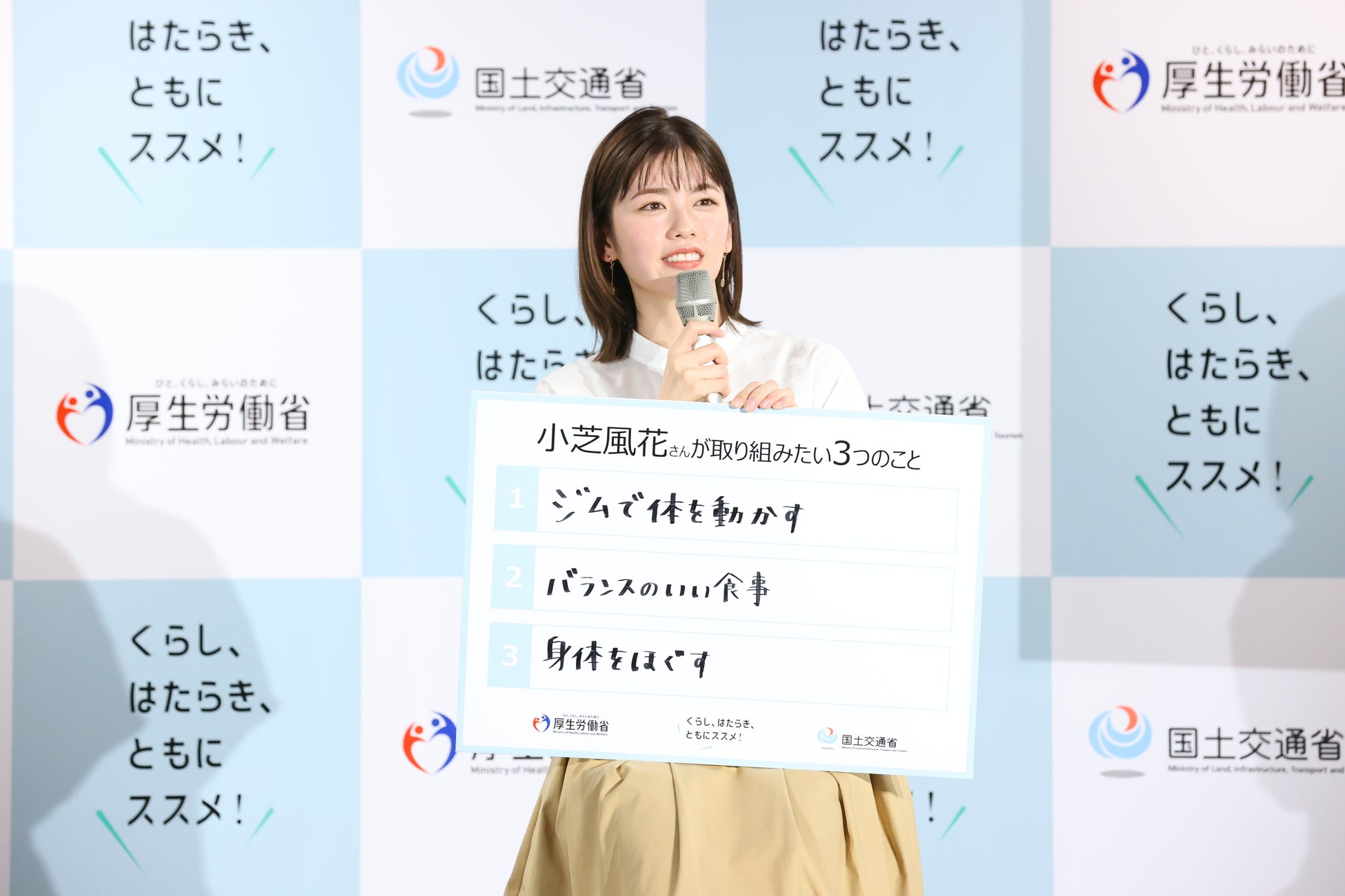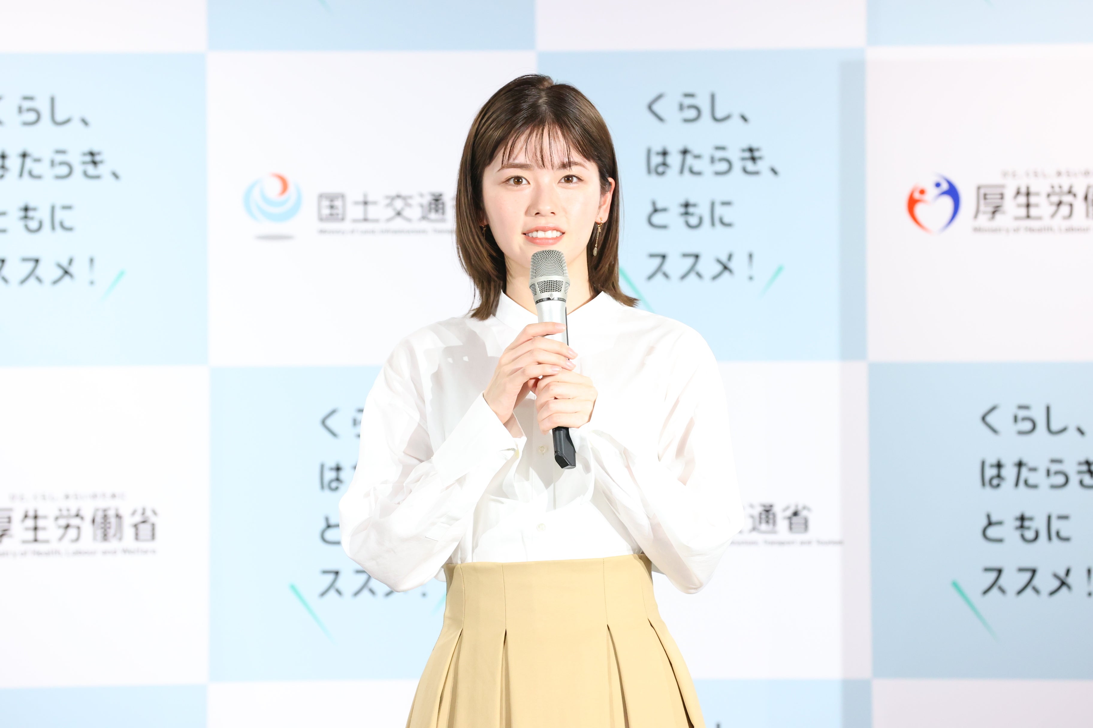 PR動画「はたらきかたススメ」では、小芝さんは、建設業、運輸業での働き方改革の実現に向けて、皆さまをご案内する「働き方改革コンダクター」として登場。「社会に欠かせないこうした職業の方々が健康に働き続けられるように、国民の皆さま一人一人のご理解とご協力が必要です。」として、