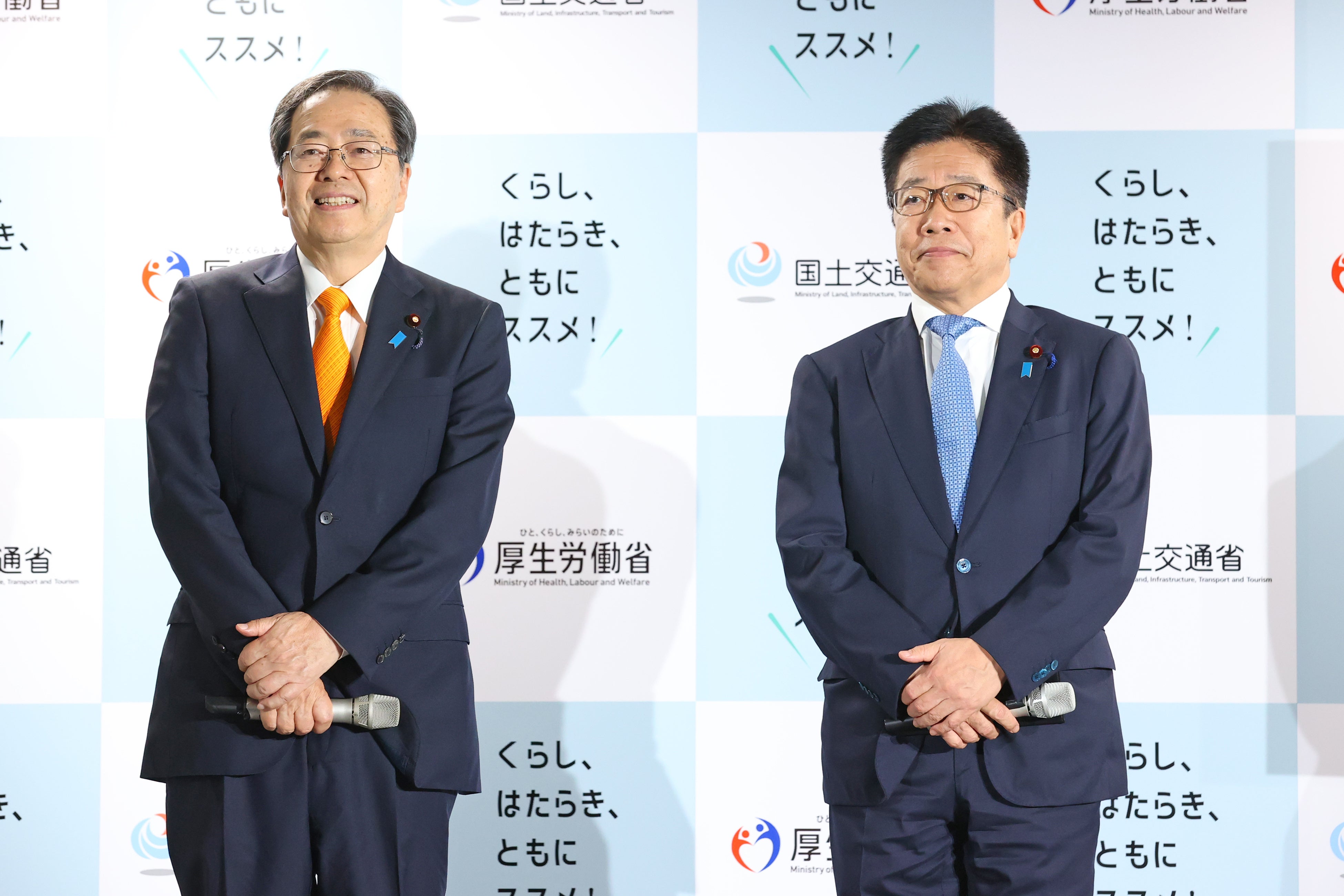 発表会冒頭では、加藤厚生労働大臣と斉藤国土交通大臣が登壇しました。