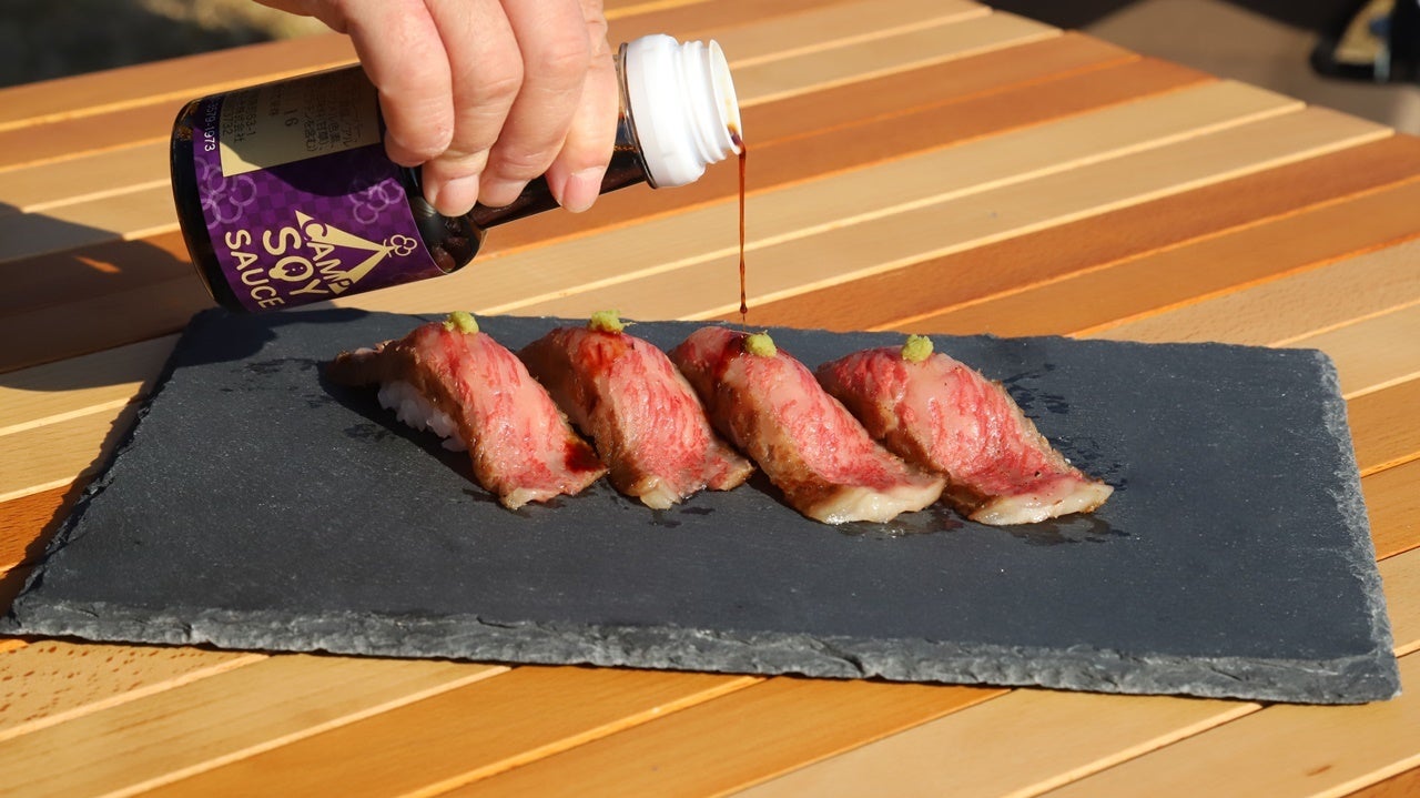 ⾷材に、かけて・つけて・炊いて美味しいキャンプ醤油。