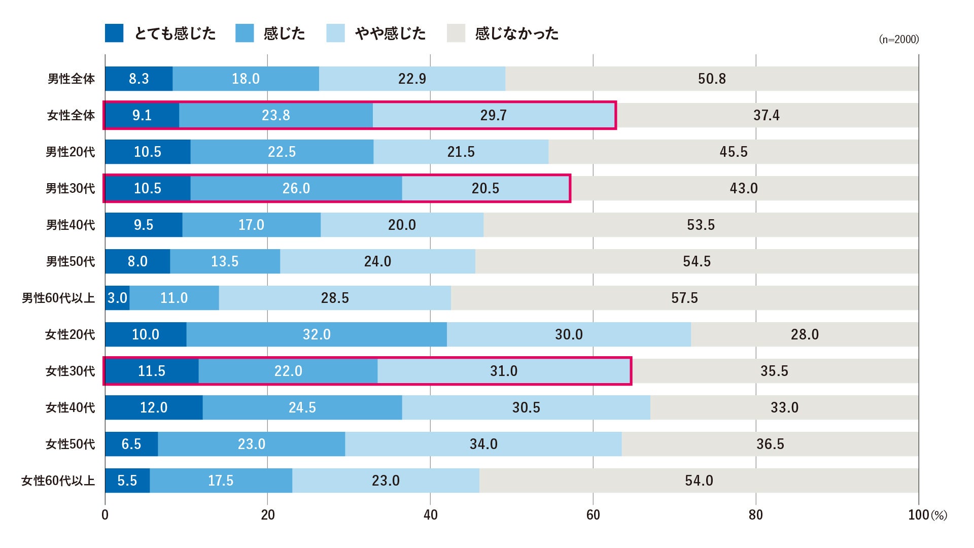 Q あなたは、現在ストレスをどの程度感じていますか。(お答えは1つ)(n=2000)
