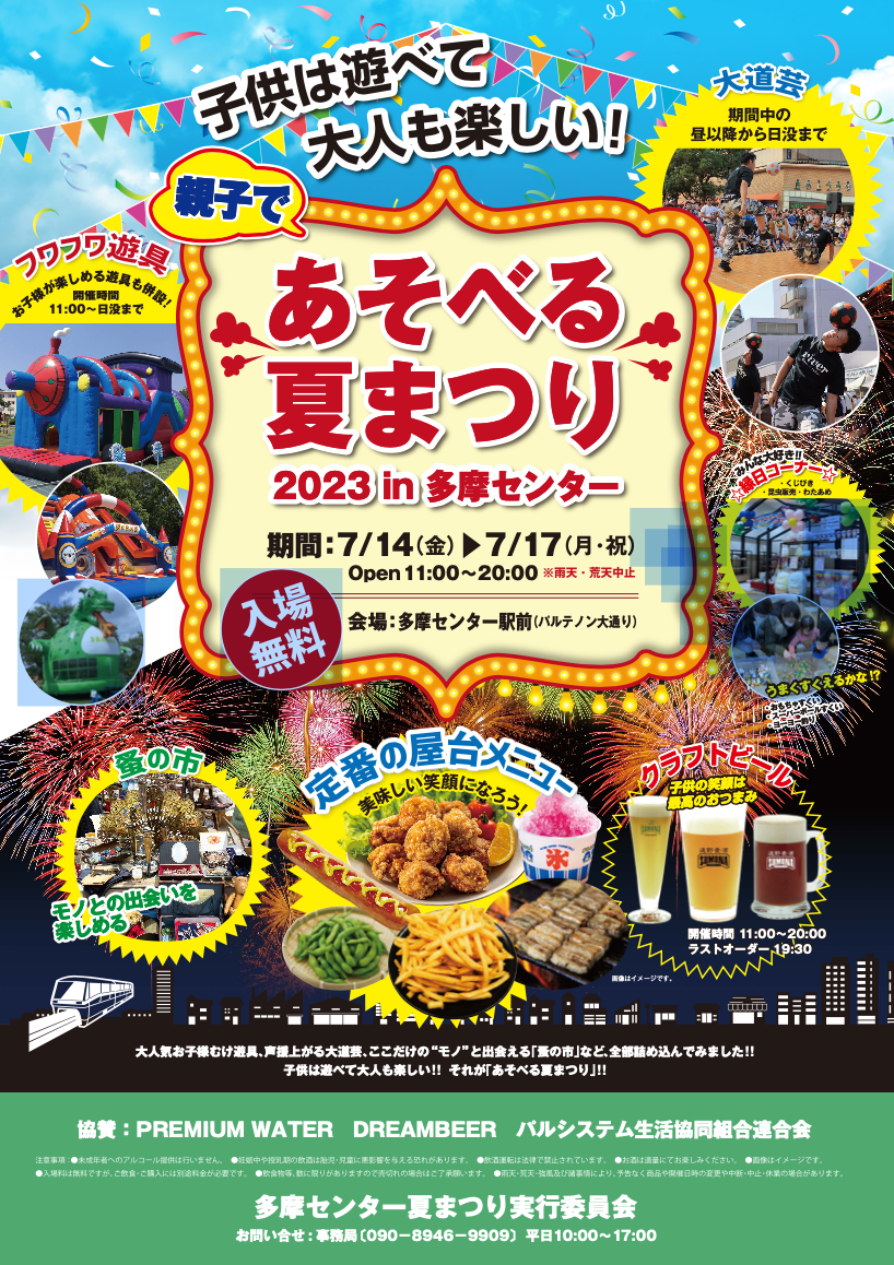 本イベントは多摩ニュータウンの中心地にて、地域及び近郊住人や周辺施設利用の家族、友人他、