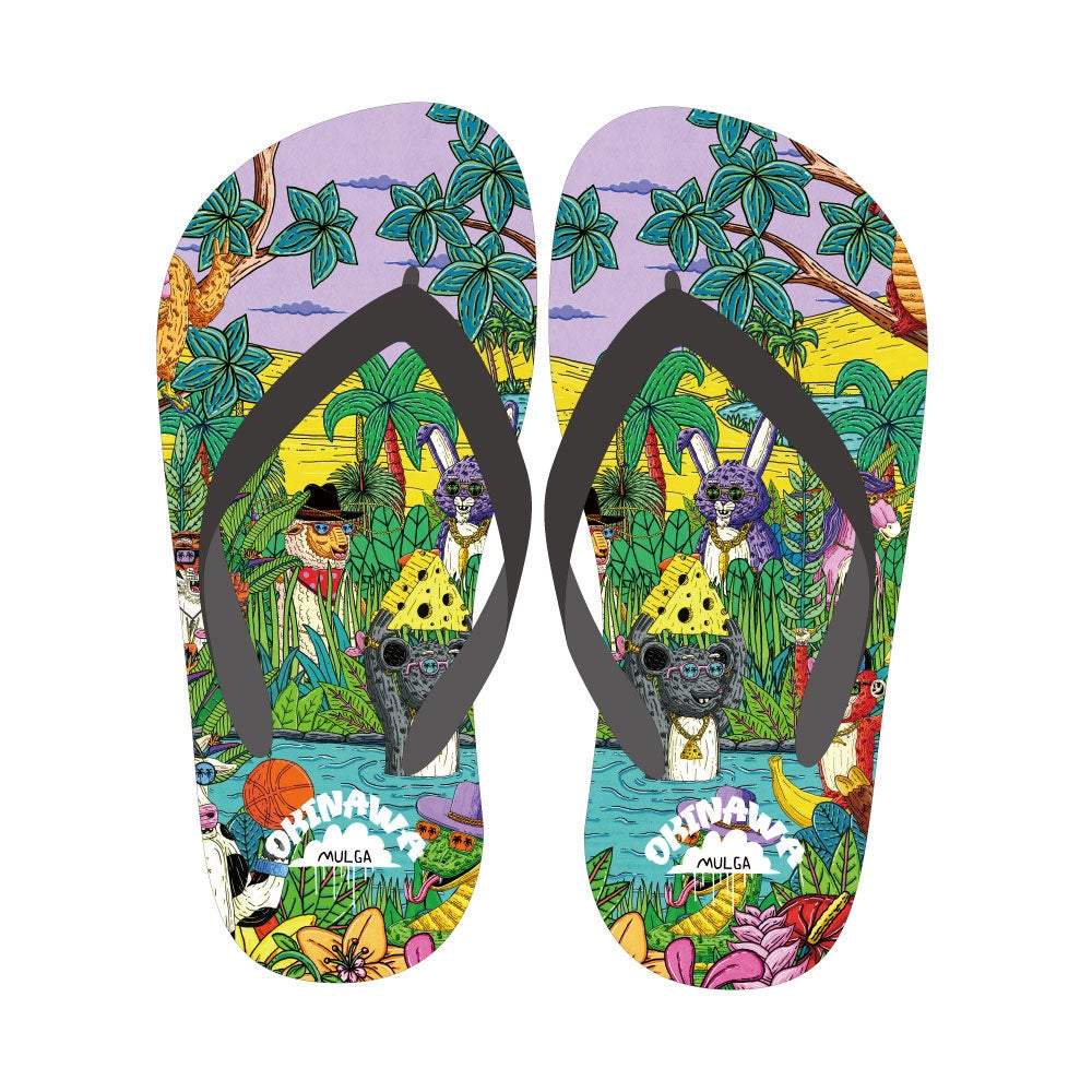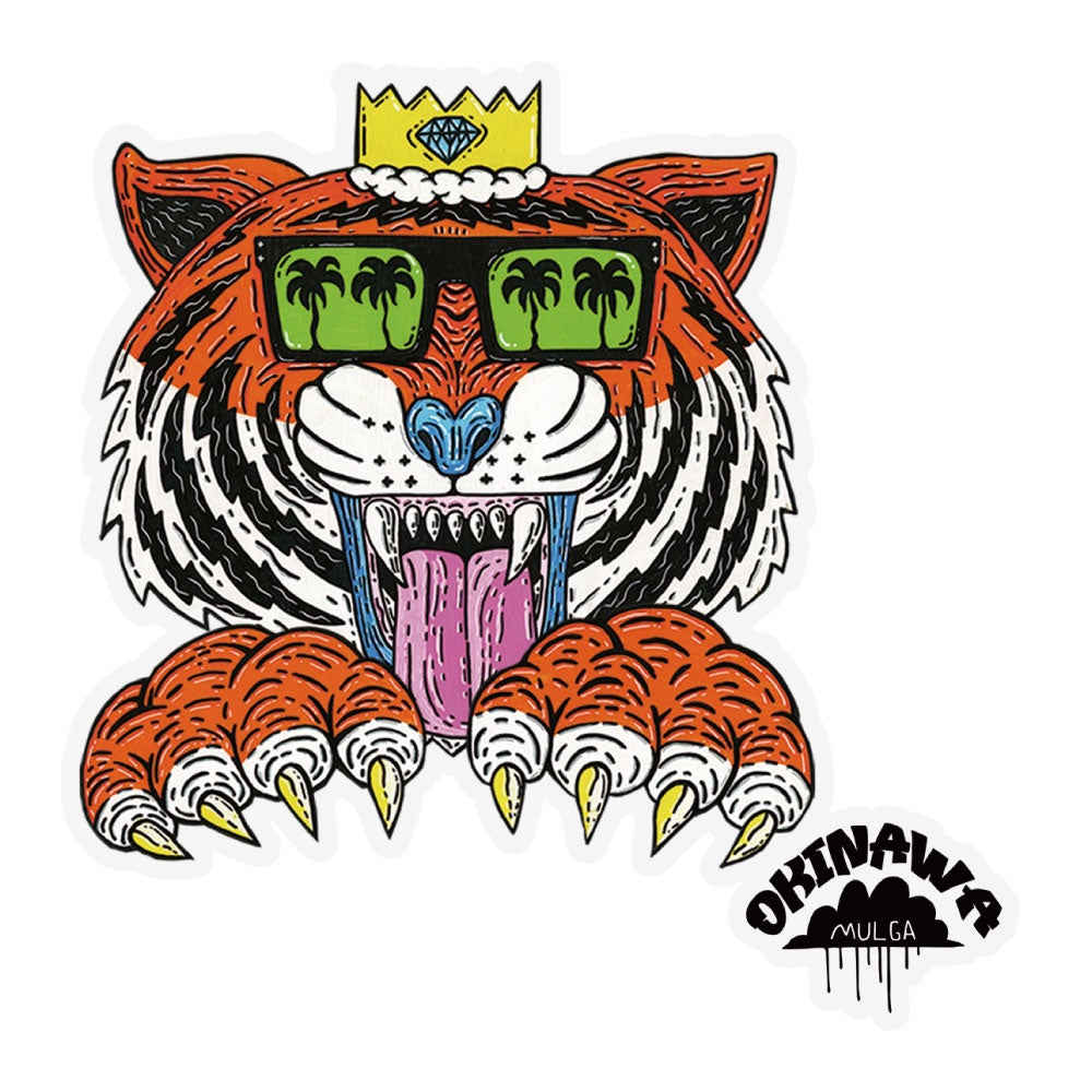 今回のコラボ商品は、Tシャツ、シャワーサンダル、ビーチサンダル、カップインタンブラー、エコバッグ、クリアファイル、ステッカーなど、日常生活で使いやすいアイテムばかりです。Tシャツには、「モルガ(MULGA)」の作品を細部まで再現した刺繍や、沖縄の伝統的なモチーフである「シーサー」や「守礼門」をデザインしたアイテムもラインナップ。「モルガ(MULGA)」のアートと沖縄の文化が融合した、遊び心あふれるデザインとなっています。