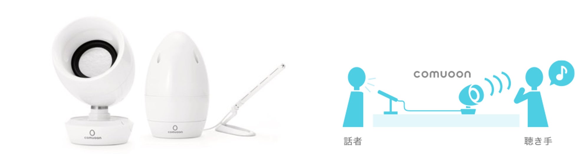 音声の明瞭度に影響している周波数帯域は1,000Hz以上と言われており、「comuoon®」は1,000Hzから10,000Hzまでの帯域を独自のスピーカーユニットと構造を採用することで“話し手”の声を聞きやすいクリアな音質に変換しコミュニケーションを支援します。