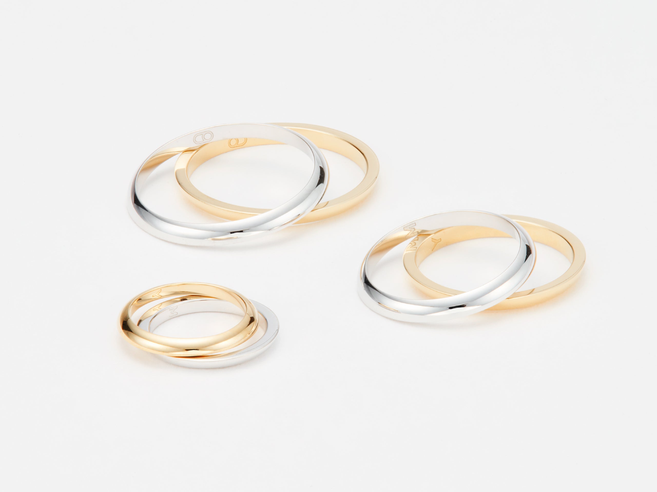 プラチナゴールドは、異なる素材の指輪を重ね合わせることで完成 する CONNECT です。貴金属と総称される 2つの素材は、その美しさと希少性の高さ、耐腐食性と加工のしやすさによって人類史上もっとも愛され続けています。甲乙つけがたい価値と性質を持ちながら、 それぞれの魅力を放つプラチナとゴールド。