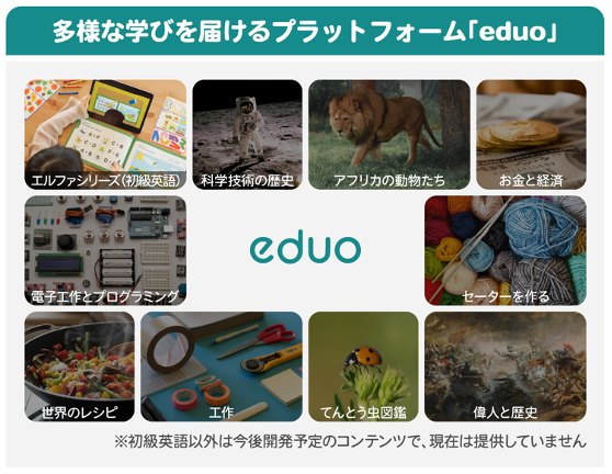 「eduo」の特徴は、教材が定期配送される定額の通信教材とは異なり、子どもの興味やレベルに合わせ必要なコースが選べる、良い意味での「体験のつまみ食い」ができる買い切り型のサービスであることです。