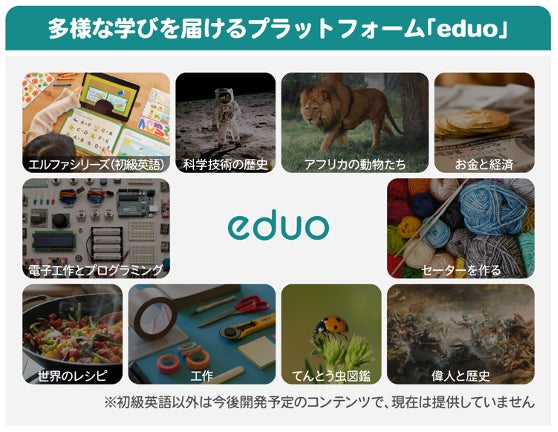 株式会社Yokiの開発した「eduo」は、様々なジャンルの「学び」コンテンツを1つのプラットフォームに集約し、サービスを利用するだけで子ども一人ひとりの興味に応えられる体験や知識が見つかる環境を目指しています。現在、「eduo」で提供しているのは、4〜8歳の子どもを対象とした英語学習コンテンツです。ワークブックなどのアナログ教材と動画などのデジタル教材を組み合わせ、シール貼りや迷路などのワークを用意することで、子どもたちが自発的に楽しく取り組むことができる仕掛けになっていると考えています。さらに、スタンプや写真で学びの記録をつけたり、学びが進むと宝石(ポイント)をもらえたりするゲーミフィケーションを取り入れています。「eduo」は第1弾の「エルファシリーズ」からスタートし、2025年までに5シリーズ25コースの展開を目指します。また、英語学習コンテンツで得た収益を再投資して、他のジャンルのコンテンツ開発を進める予定です。