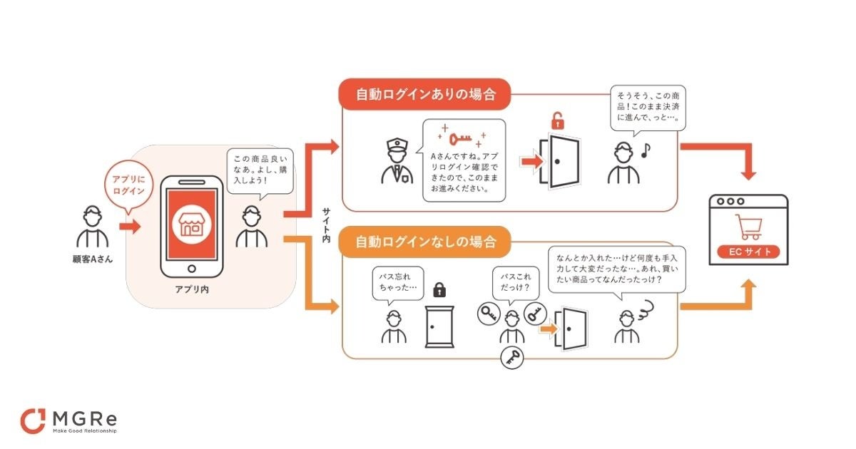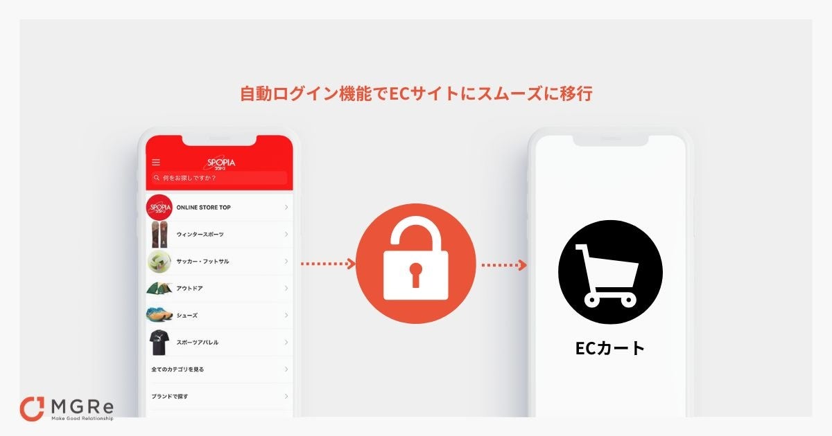 アプリとECサイトを連携し、MGReの自動ログイン機能*1によりアプリからECサイトへの動線もシームレスに。