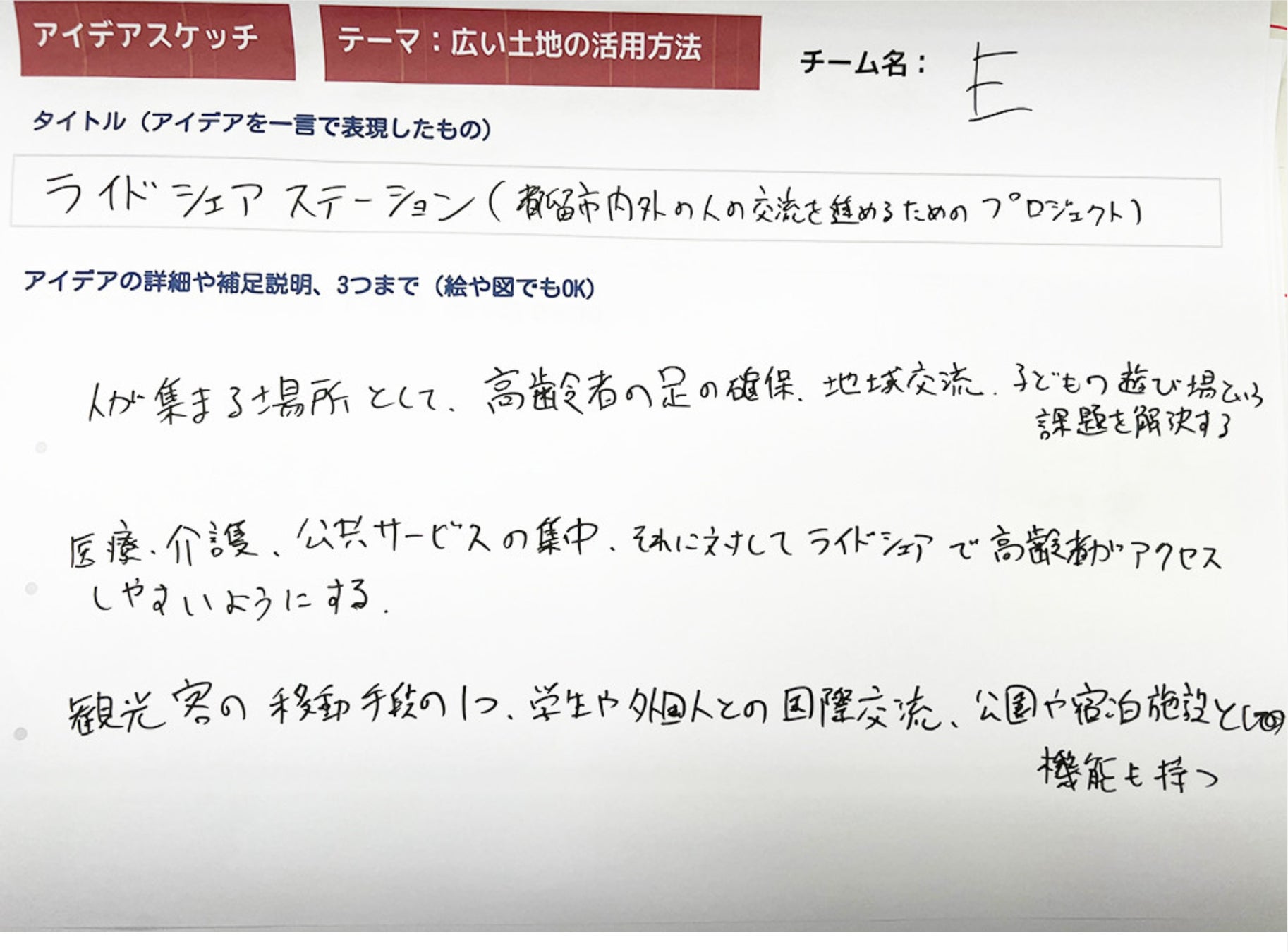 市民、行政職員、事業者が対話を通じて、都留市に求められる公共施設の機能や役割を共に考える場となり、また、4事業者が協力して取り組むための前提条件を整え、共通の目標に向けて連携を強化する機会ともなりました。 最終的に、時代に即した付加価値の高い理想的な公共施設のあり方をイメージし、具体的なアイデアが出されました。