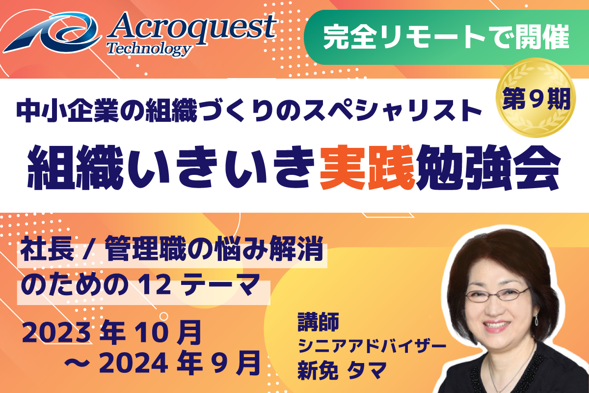 「第9期 組織いきいき実践勉強会」は2023年10月17日(火)から、全12回(1年間)のリモート開催となります。