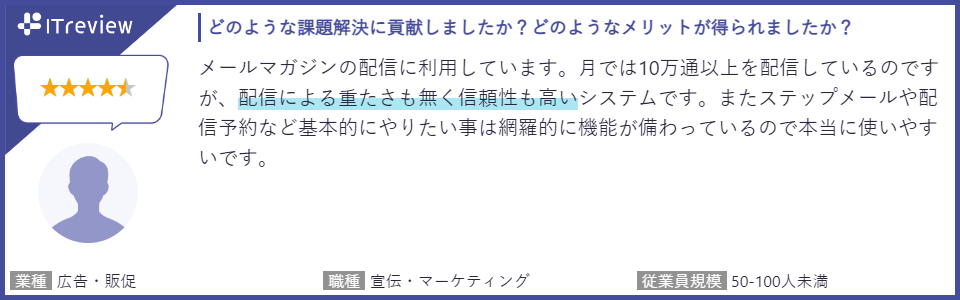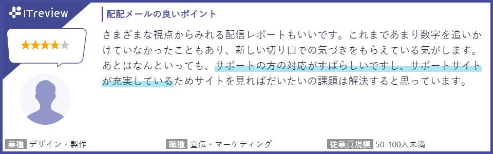 「ITreview」に掲載されている配配メールのユーザーレビューを一部ご紹介いたします。