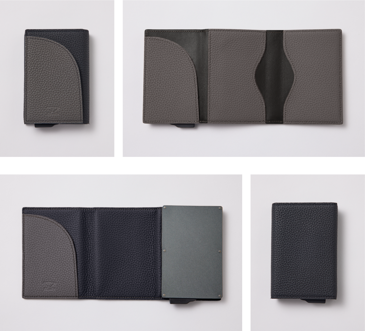 メタルカードケースホルダーには6枚、内部の3面レザーポケットを合計すると10枚以上のカードが収納可能です。デザインアイコンにもなっている表面のカーブポケットは、駐車券や切符などを一時的に入れておくのに最適で、機能性とデザインを両立しております。