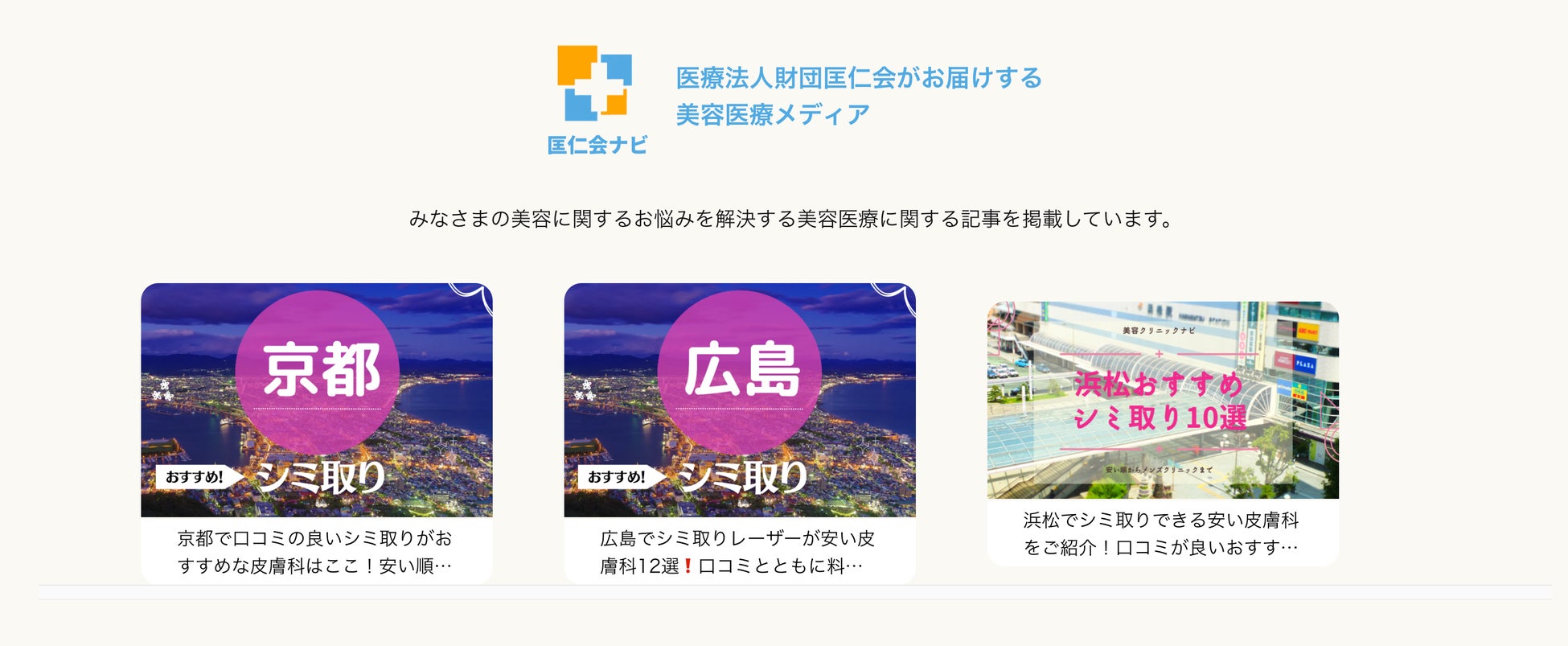 匡仁会ナビ では、主に全国各地の美容クリニックを紹介しています。記事の中では、下記の内容を掲載しています。