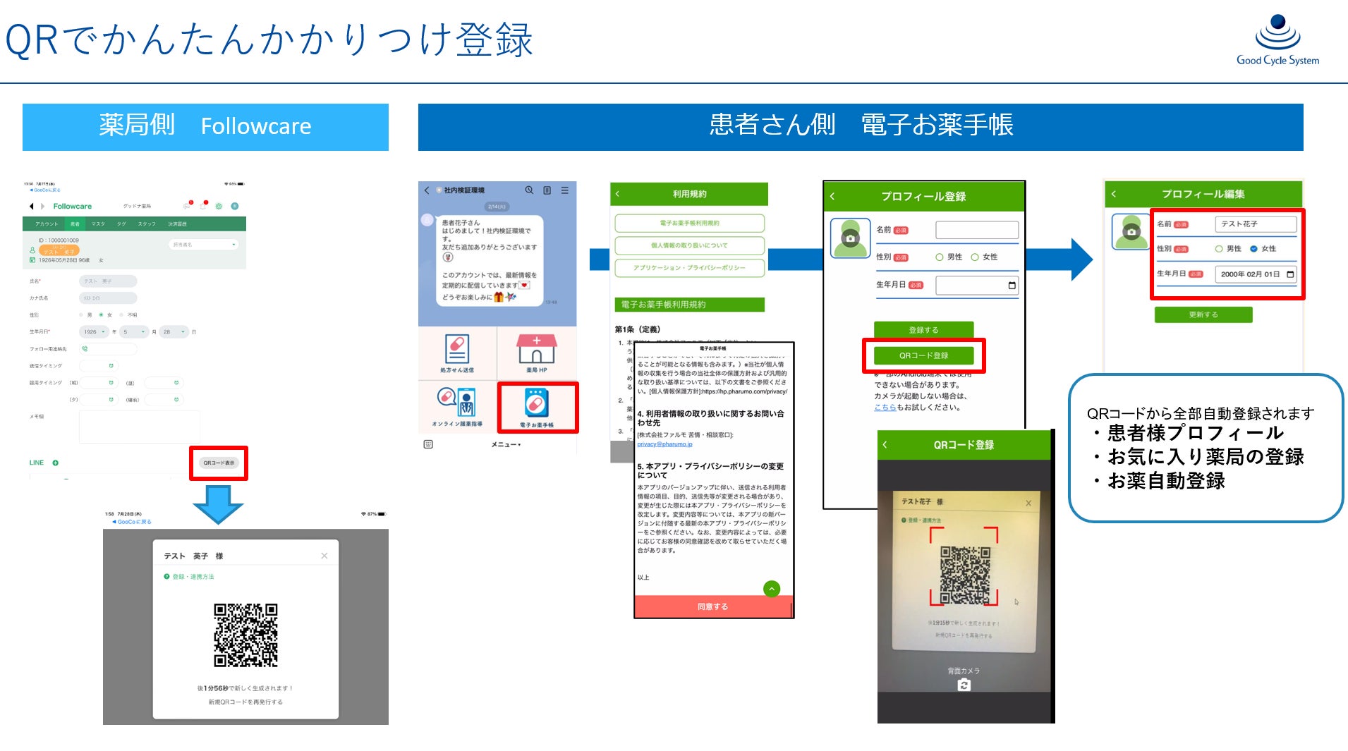 株式会社グッドサイクルシステム(本社所在地:東京都渋谷区、代表取締役:遠藤 朝朗)は、「オンライン服薬指導・服薬フォローアップ対応ツールFollowcare」(以下「Followcare」)に、LINEと連携した電子お薬手帳の機能を追加したことをお知らせいたします。