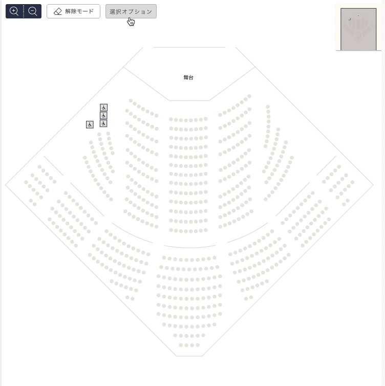 teketの機能の中でも、新型コロナウイルス感染症対策として好評を博しているのが、「ワンクリックで格子状に座席指定ができる機能」です。