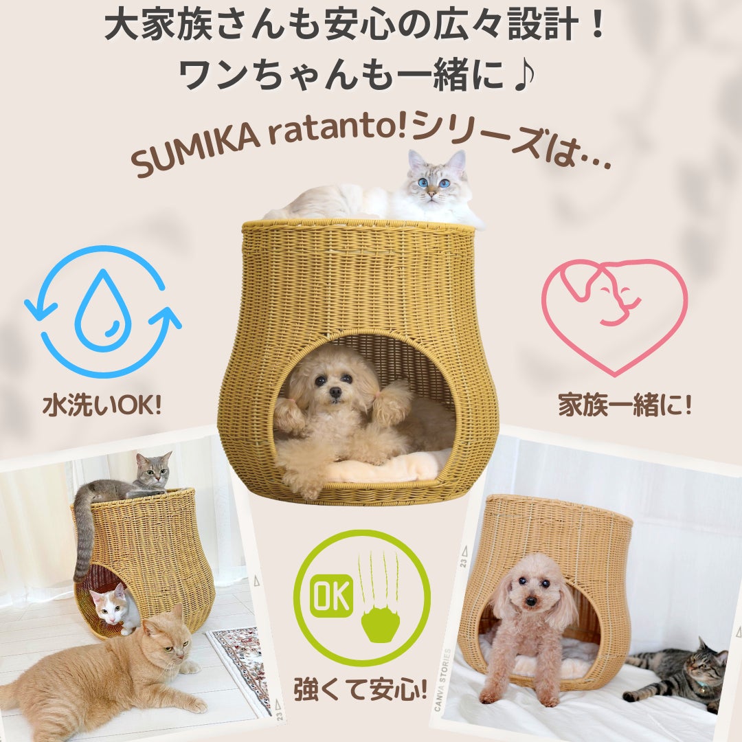 株式会社TIRAMISU(本社:東京都世田谷区 代表取締役:髙澤 匡 以下「当社」)が運営する 猫ぐらしブランド「キミとワタシのSUMIKA」(以下「SUMIKA」)は、楽天市場お買い物マラソンと連動し、洗えて強い人工ラタンを用いた「ratanto!シリーズ」より、2階建て仕様の2WAY爪とぎベッド『ちぐニャン』を新発売いたしました。