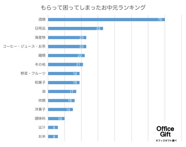 「これまでにもらって困ってしまったお中元は何ですか?」という質問では、嬉かったお中元で上位だった「酒類」が、まさかの1位という結果に…!