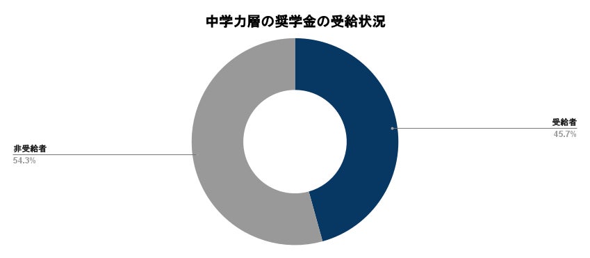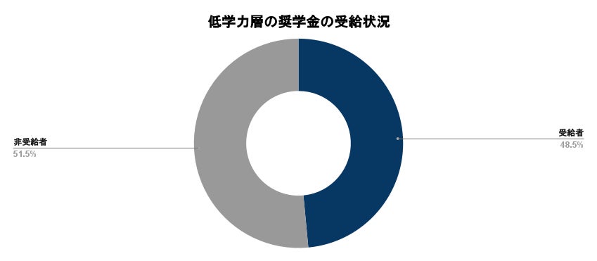 奨学金を受け取ったのは、低学力層が48.5%、中学力層は45.7%と各層の中で最も多い回答となり、約半分を占めています。