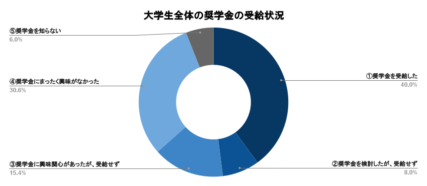 半数以上の63.4%が奨学金を検討または興味があり、そのうち実際に受給に至ったのは63.1%と6割を超えています。