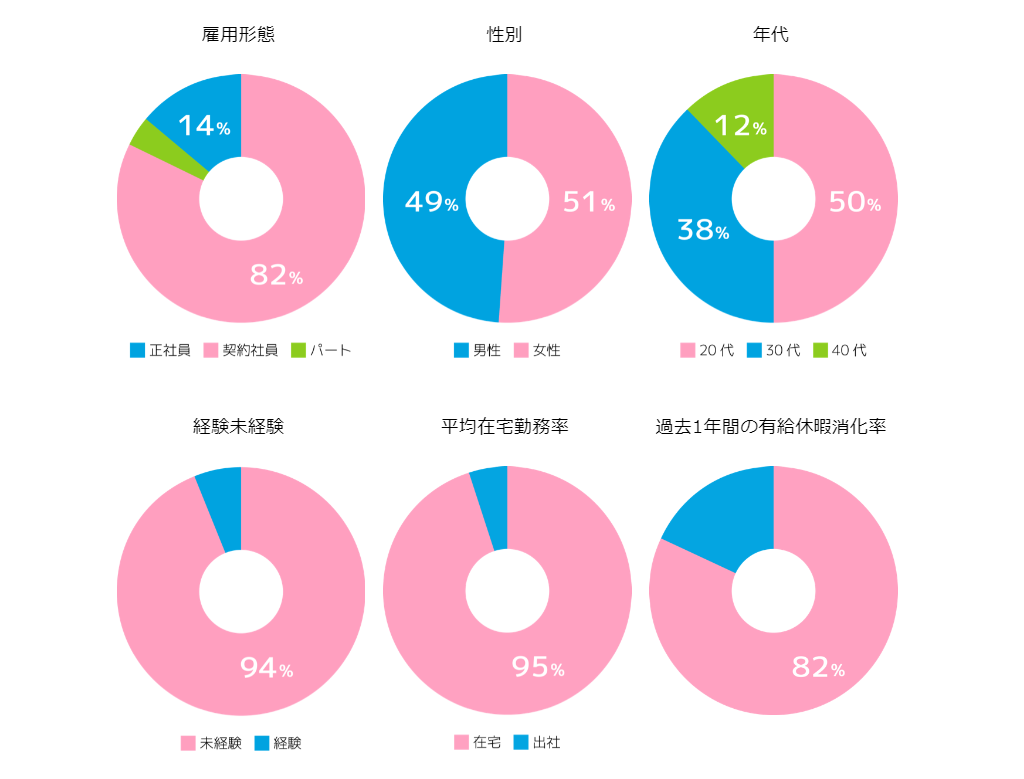 業務内容やライフスタイルに合わせて出社・在宅が選択できるようになっていて、平均すると95%の社員が在宅勤務をしています。