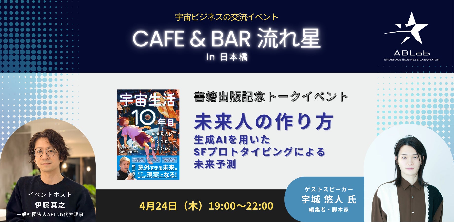 対談は4月24日(木)、宇宙ビジネスに関心を持つ人々が集うABLab主催の交流イベント「Cafe&Bar流れ星」内で行われます。