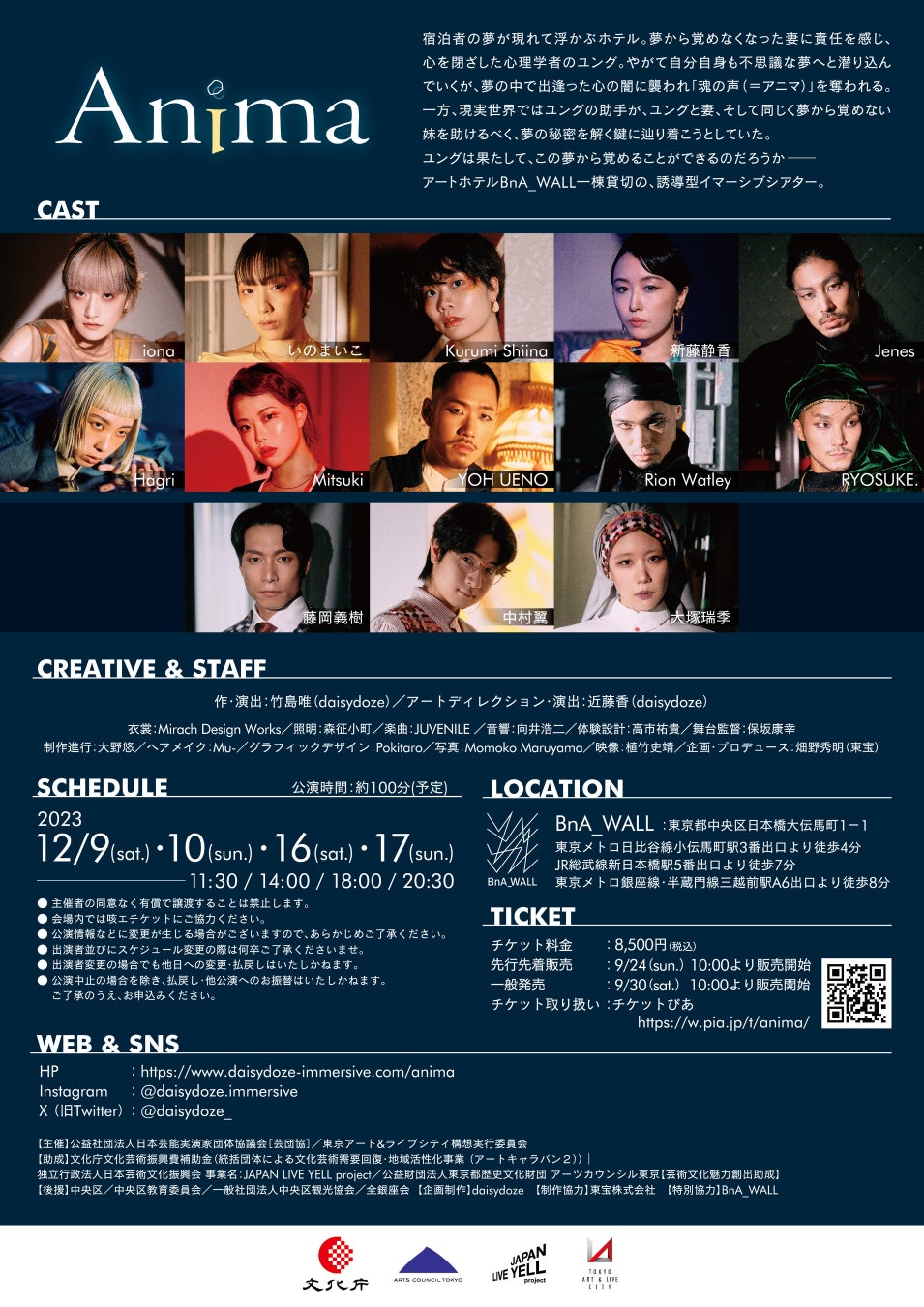 日本国内屈指の実力派キャストとクリエイティブチームが集結した日本発のオリジナルイマーシブシアター『Anima』に、是非ご期待ください。