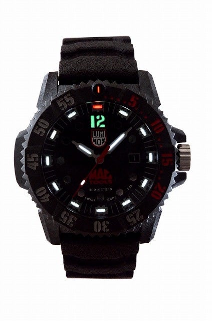 ベゼルにはマックツールズとルミノックスのイメージカラーであるレッドを配色しており、コラボレーションモデルならではのデザインが随所に施されました。